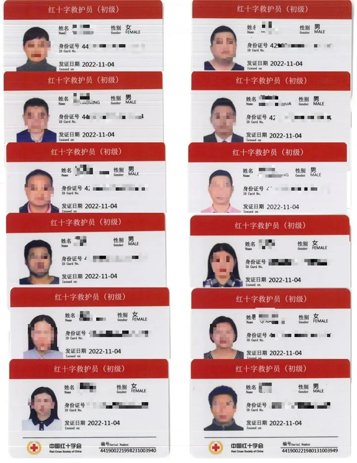 截止至今,我司共輸送6批次參加相關(guān)應(yīng)急救援培訓(xùn),獲得“初級救護員證”90余人,獲得“五級應(yīng)急救援員證”15人。下來,中保維安黨支部計劃將急救培訓(xùn)進一步擴面,逐步延伸到其他區(qū)域子(分)公司,將急救知識及技能培訓(xùn)融入至各類服務(wù)業(yè)態(tài)中去,提高公眾健康意識和健康素養(yǎng),營造健康安全的生活環(huán)境,促進粵港澳大灣區(qū)的衛(wèi)生健康事業(yè)高質(zhì)量發(fā)展。